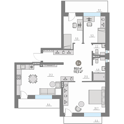 3-комнатная №26, 88.6 м²