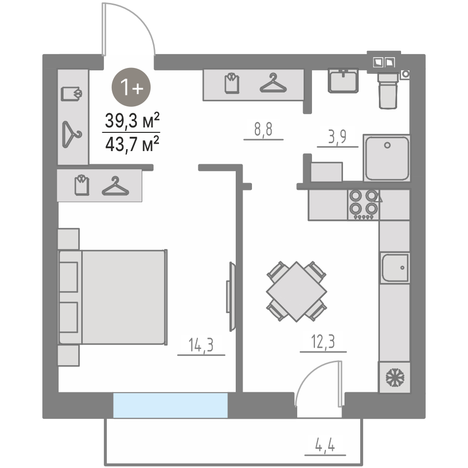 Квартира №14 39.3 м²