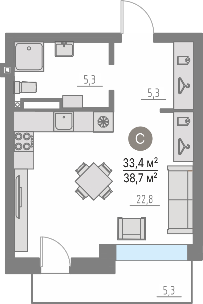 Квартира №15 33.4 м²