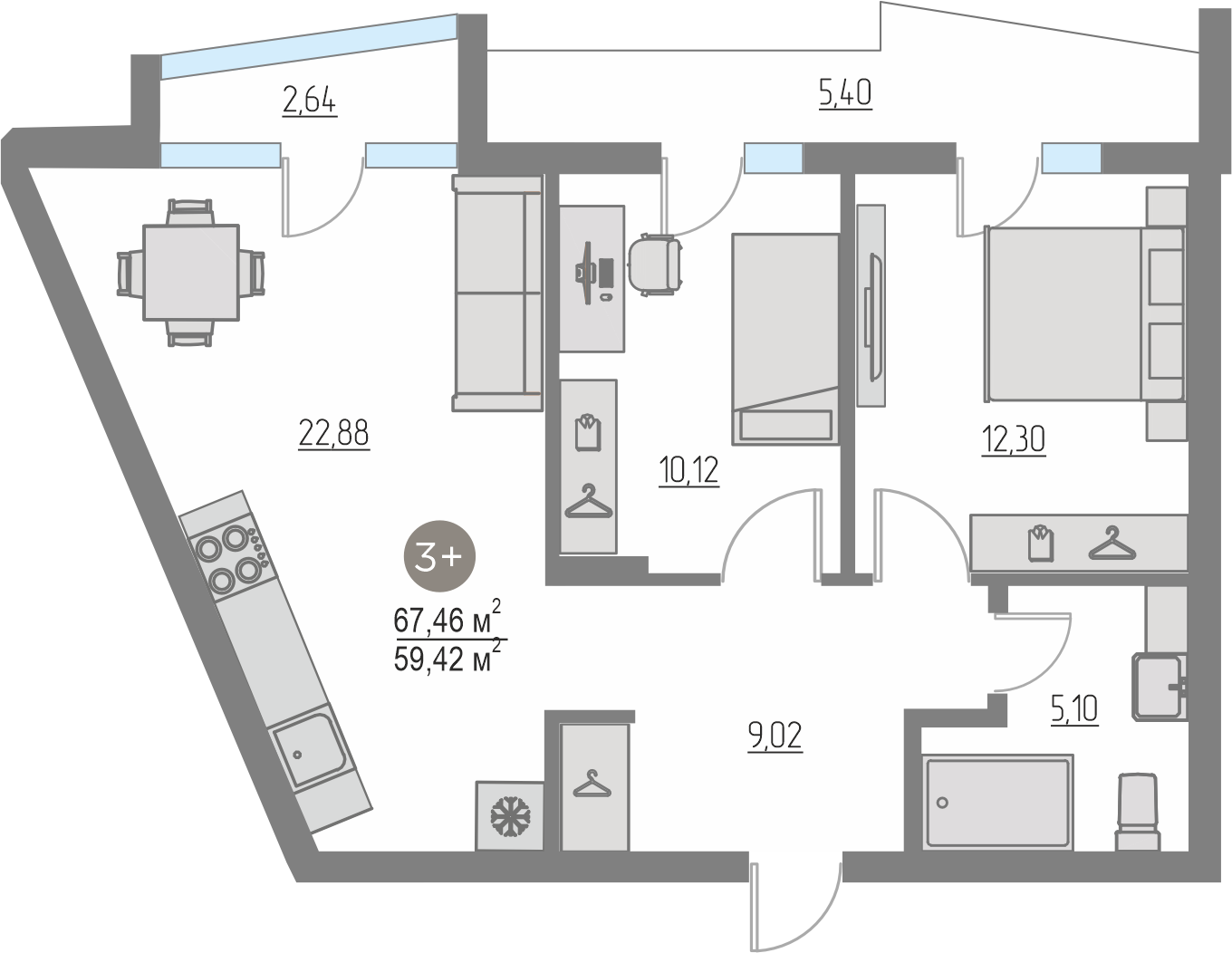 Квартира №43 67.46 м²